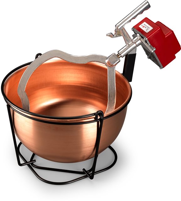 Descrizione: Mescolatore per polenta e risotti con paiolo, litri 11