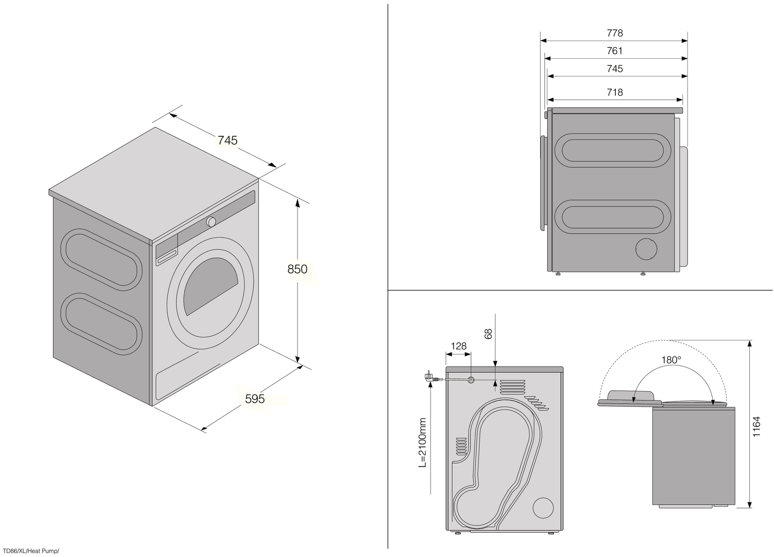 - Lunghezza del cavo di alimentazione: 2100 mm