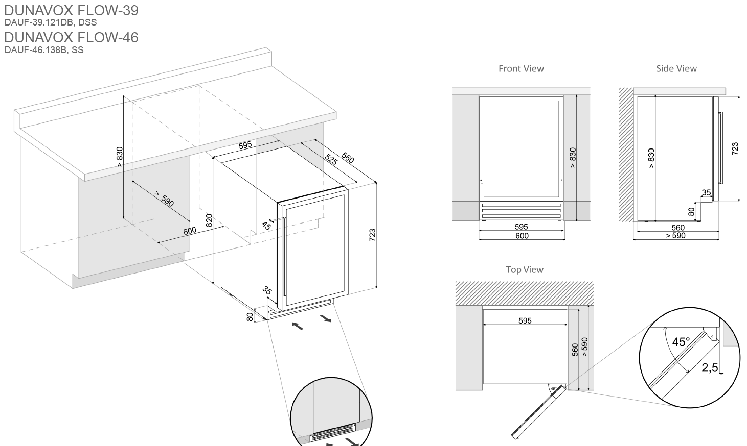 La cantinetta può sia essere inserita nei mobili grazie all'autoventilazione nello zoccolo (vedi schema tecnico), sia essere installata a posizionamento libero.