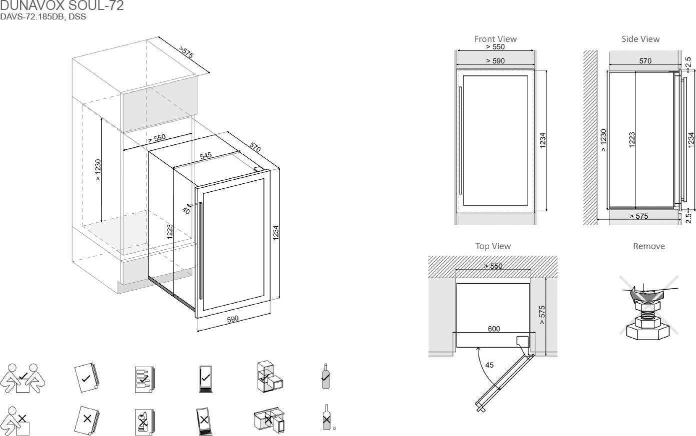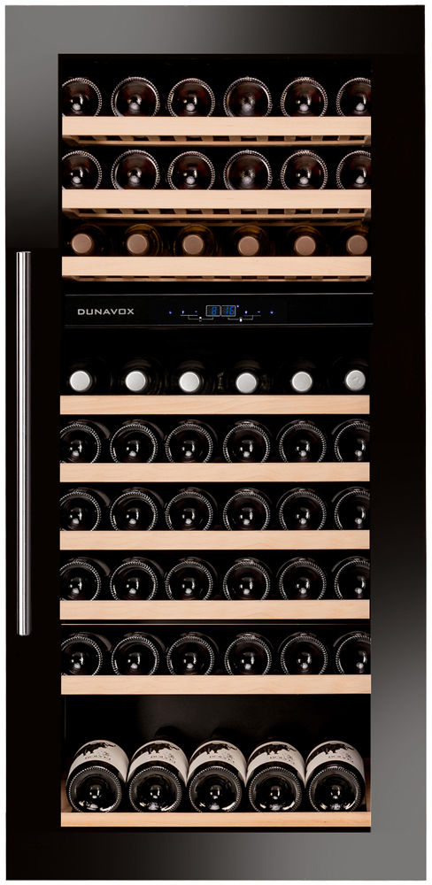 Cantinetta per vini a due zone di temperatura capace di contenere 72 bottiglie bordolesi standard, dotata di un sistema di ventilazione automatico e un'elegante maniglia di acciaio inox. Porta vetrata disponibile in finitura acciaio inox oppure full glass nera. Questo modello dispone di una illuminazione interna a LED "Tricolor" per darti la possibilità di scegliere tra 3 colori diversi per l'illuminazione interna (bianco, ambra e azzurra). Le bottiglie al suo interno sono riposte su solidi ripiani in legno di faggio estraibili e rimovibili (la zona superiore deve essere sempre regolata ad una temperatura più bassa rispetto a quella inferiore, differenza minima 1°C, differenza massima 8°C). Incernieratura porta reversibile e allarme porta aperta.