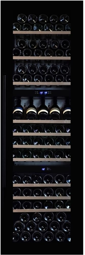 Cantinetta per vini a tre zone di temperatura capace di contenere 89 bottiglie bordolesi standard, dotata di un sistema di ventilazione automatico e un'elegante maniglia di acciaio inox. Porta vetrata disponibile in finitura acciaio inox oppure full glass nera. Questo modello dispone di una illuminazione interna a LED "Tricolor" per darti la possibilità di scegliere tra 3 colori diversi per l'illuminazione interna (bianco, ambra e azzurra). Le bottiglie al suo interno sono riposte su solidi ripiani in legno di faggio estraibili e rimovibili (la zona centrale deve essere sempre regolata ad una temperatura più bassa rispetto a quella inferiore e superiore, differenza minima 1°C, differenza massima 8°C). Incernieratura porta reversibile e allarme porta aperta.