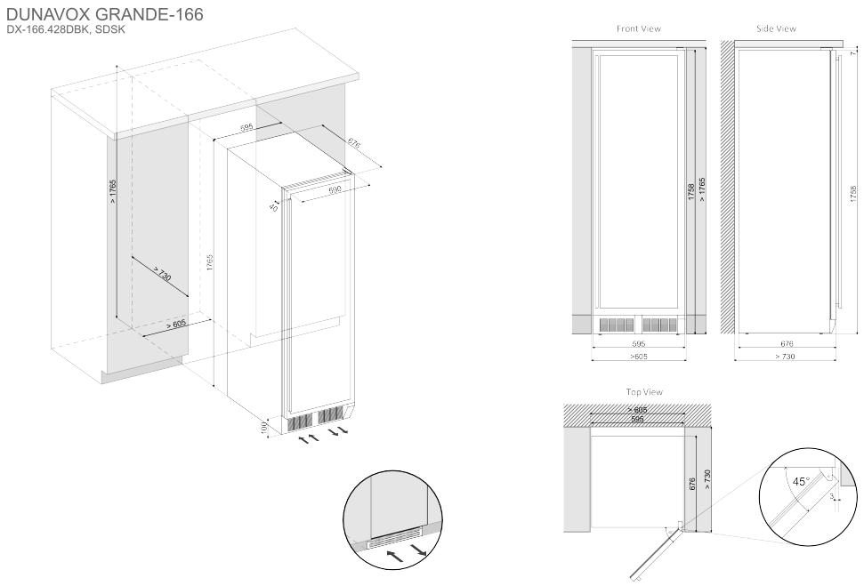 La cantinetta può sia essere inserita nei mobili grazie all'autoventilazione nello zoccolo (vedi schema tecnico), sia essere installata a posizionamento libero.