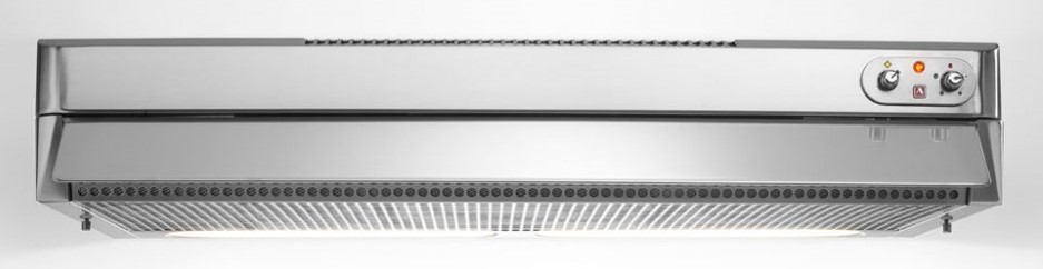 Descrizione: Cappa aspirante-depurante in acciaio inox con filtro estensibile a 2 motoaspiratori, cm 90