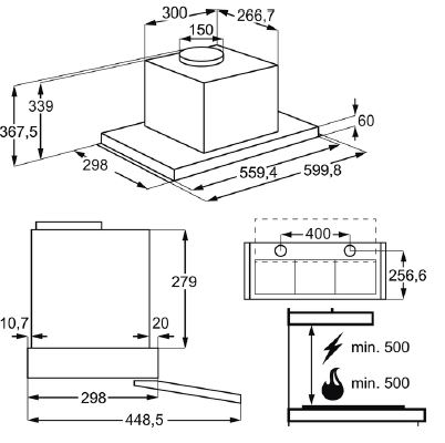 Descrizione: Cappa incasso estraibile serie 600, cm 60, 3 velocità, portata 400 m3/ora, classe D