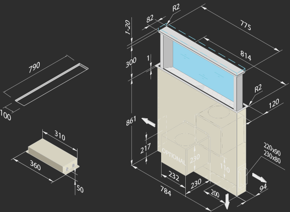 - Raccordo: Diametro 150 mm / 200 x 90 mm / 230 x 80 mm