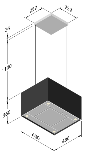 Descrizione: Cappa a isola in vetro, cm 60, comandi rotativo, illuminazione a Led, classe B