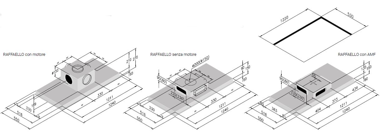 • Raccordo: Ø 150mm/ Ø 200mm - 220x90mm / 230x80mm