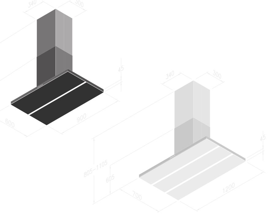 Descrizione: Cappa a isola in vetro, cm 90, comandi SoftTouch, illuminazione Strip Led, classe A