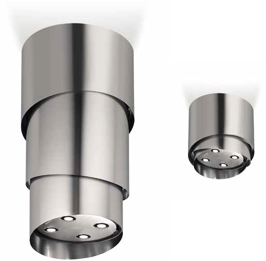 Descrizione: Cappa ad isola, diam. 50 cm, inox, elettronica, 4 velocità, filtri in alluminio, 520 mc/h, illuminazione a LED, classe A