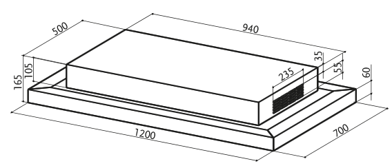 Volumi geometrici in completa simmetria in un perfetto mix di acciaio e vetro per un nuovo concetto di modello a isola. L'innovativo modello di cappa a soffitto, caratterizzato da un solido corpo in acciaio e da un sottile pannello in vetro, ideale per consentire una potente aspirazione perimetrale. Il suo plus inoltre risiede nel fatto che non viene incassata nel muro, ma è semplicemente installata a filo per un elegante effetto sospensione.