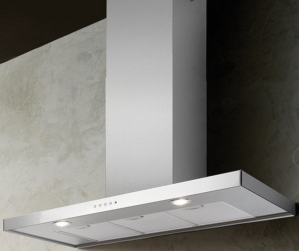 Descrizione: Cappa a parete in acciaio inox, comandi soft touch, illuminazione a Led, classe A