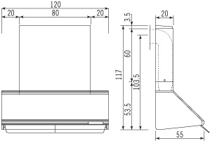 Descrizione: Cappa a parete aspirante in acciaio inox a 2 motoaspiratori, cm 120