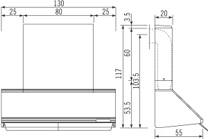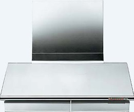 Descrizione: Cappa a parete aspirante in acciaio inox a 2 motoaspiratori, cm 130