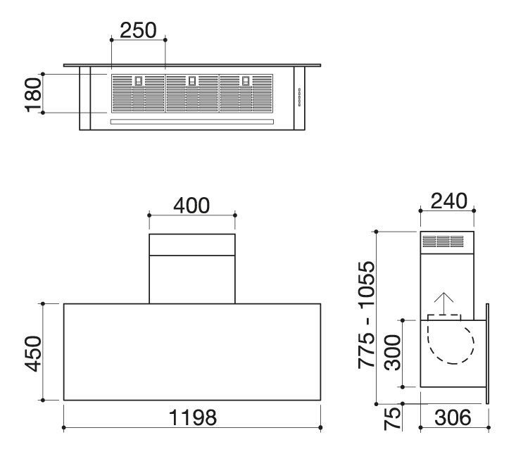• uscita aspirazione: ø 150 mm + riduttore ø 120 mm