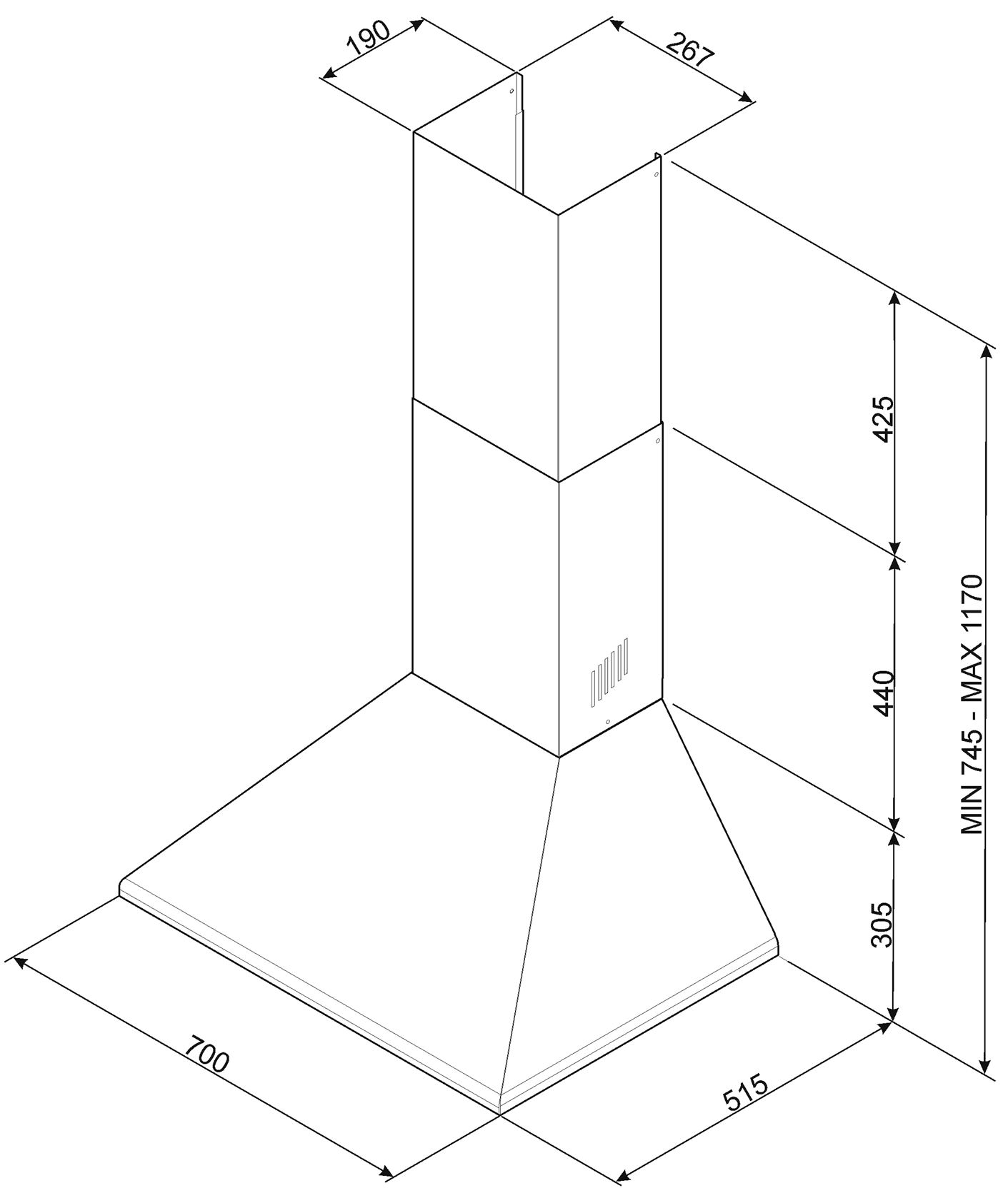 - Distanza minima istallazione da piano cottura gas 750 mm