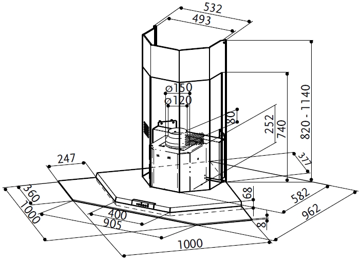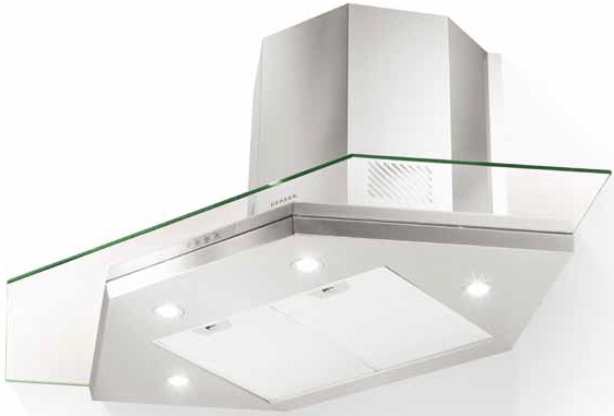 Descrizione: Cappa angolare, 100 cm, acciaio inox / vetro, comandi elettronici, 4 velocità, 700 mc/h, classe B