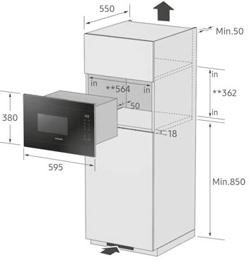 - Dimensioni Vano Incasso in mm (LxAxP) 564x362x320