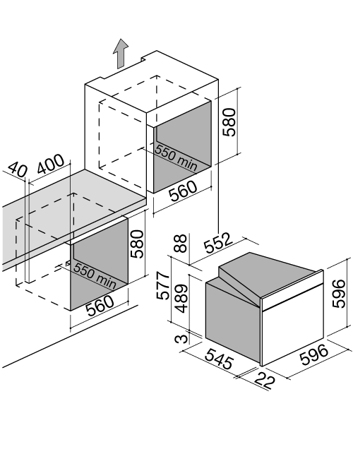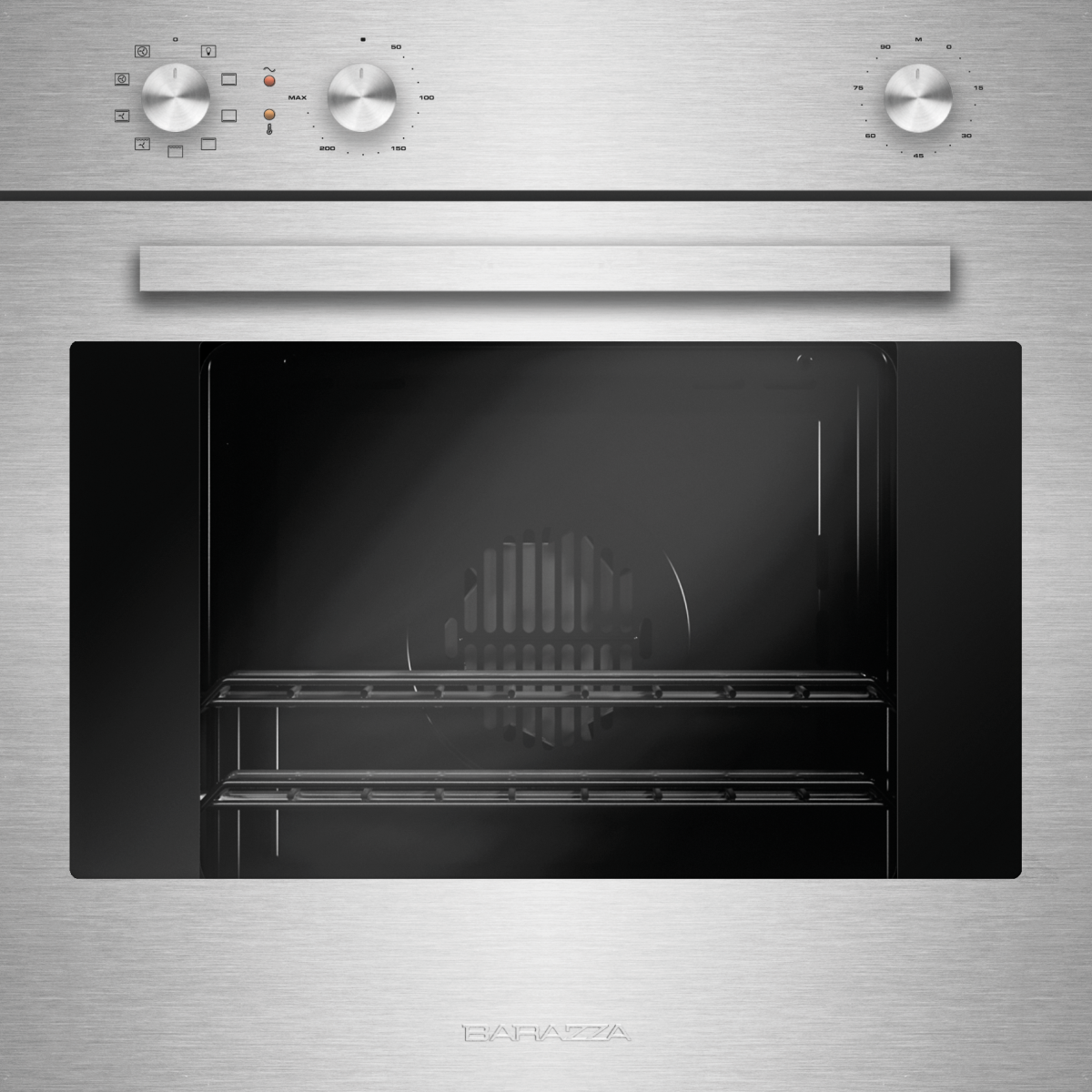- contaminuti meccanico a 90’ con suoneria e fine cottura caratteristiche: interno forno stampato Easy Clean, porta estraibile e smontabile con triplo vetro e cristalli termoriflettenti, ventilazione tangenziale di raffreddamento, 1 luce posteriore