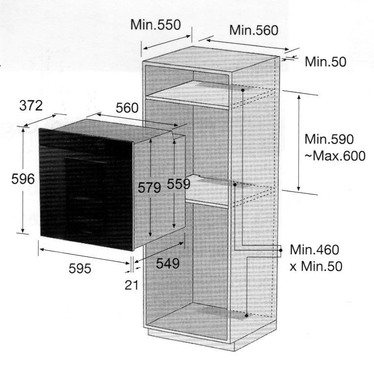 - Dimensioni Vano Incasso in mm (LxAxP) 560x590x550