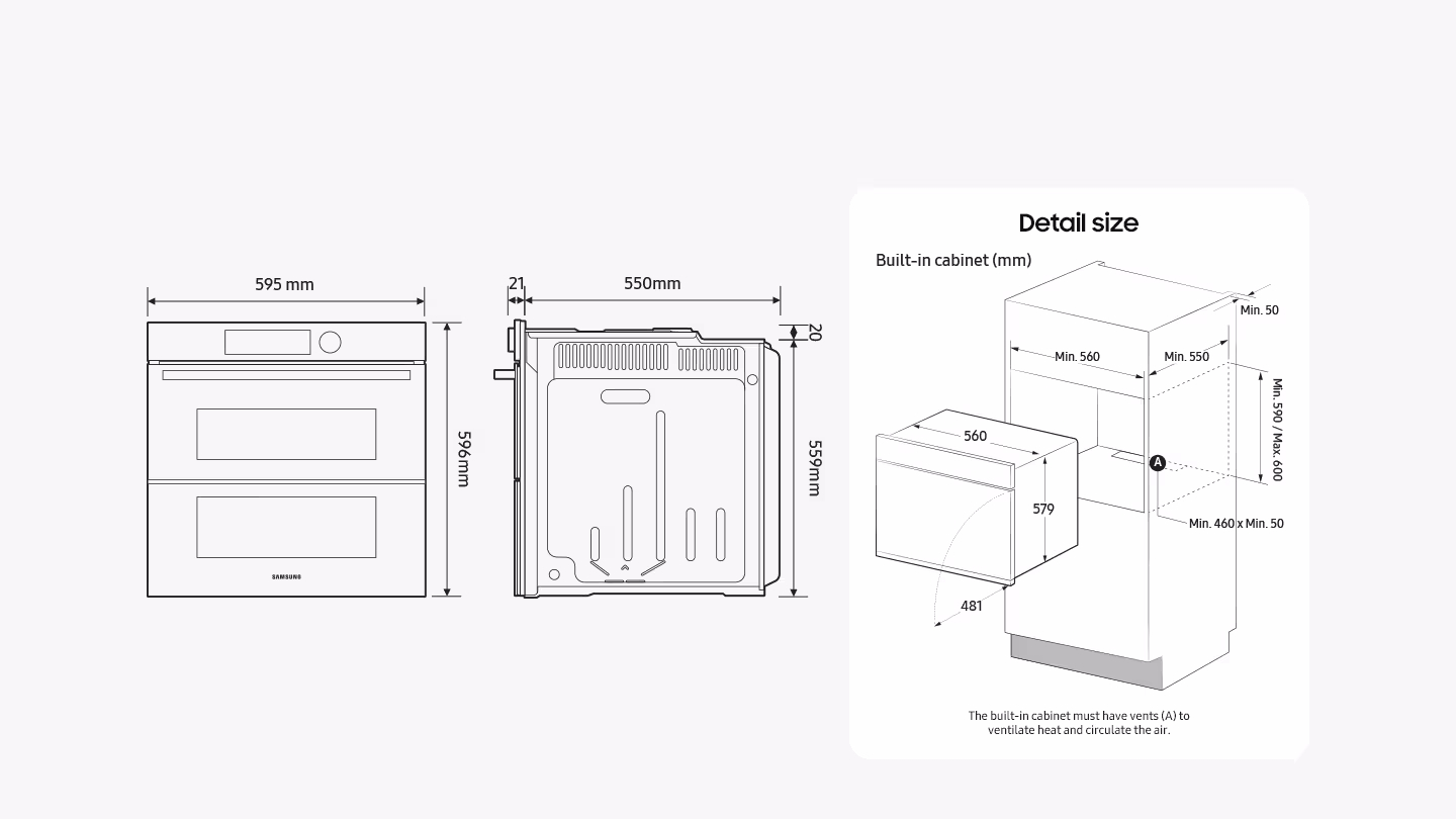 - Dimensioni Vano Incasso in mm (LxAxP) 560x590x550