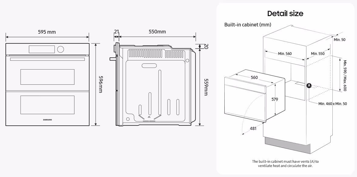- Cavità: 560 x 579 x 549 mm