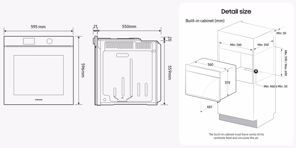 - Cavità: 560 x 579 x 549 mm
