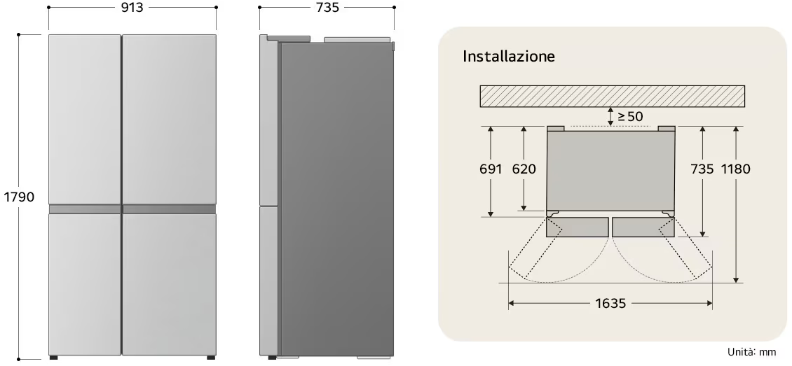 - Dimensioni (L x A x P) 913 x 1790 x 735 mm