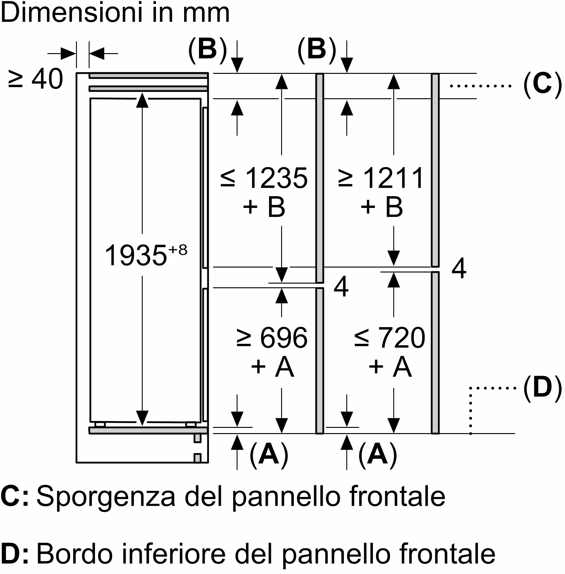 - Altezza minima della nicchia 1.940 mm