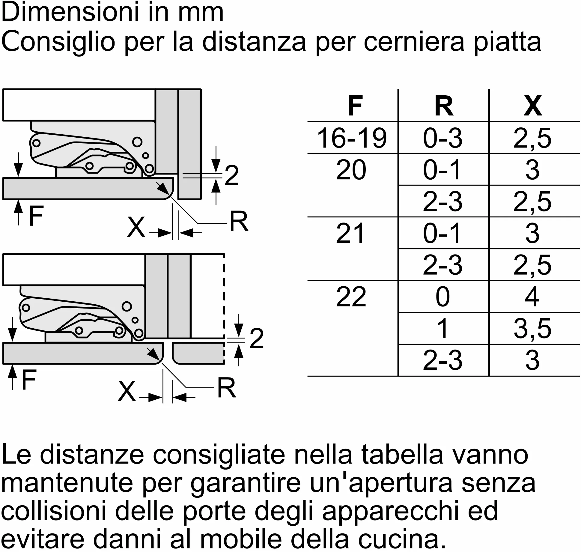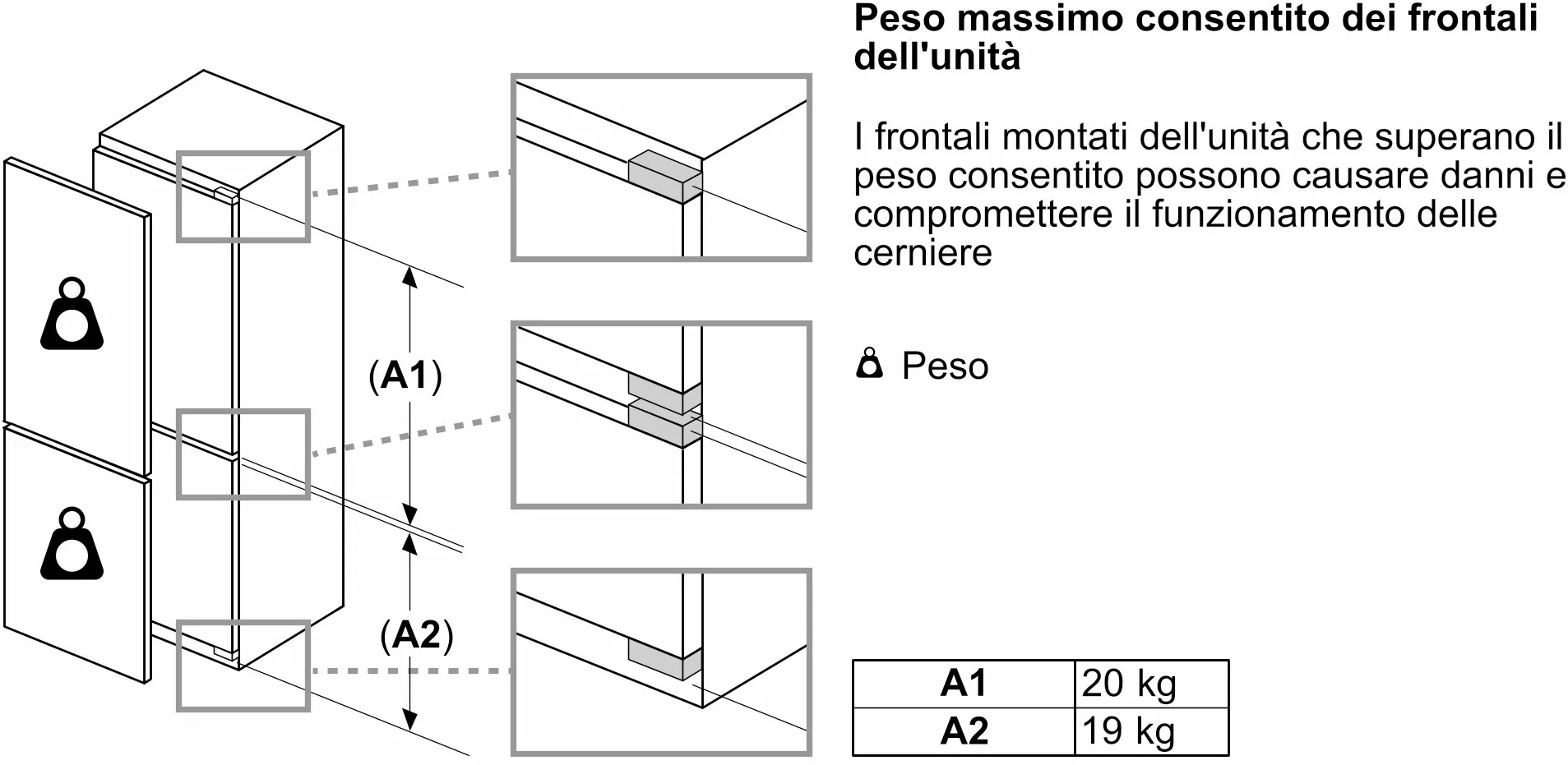 - Cerniere Autoportanti (il peso massimo delle ante è di 20 kg per porta)