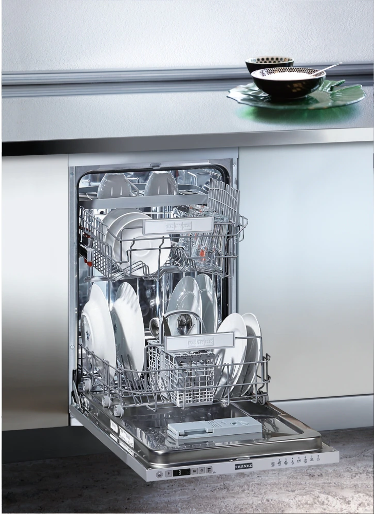 Descrizione: Lavastoviglie a scomparsa totale cm 45, 10 coperti, 8 programmi, programmatore elettron., partenza ritardata, classe E