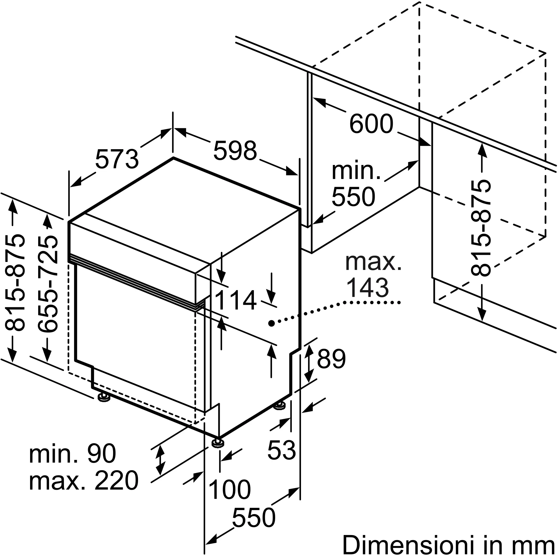 - Profondità della nicchia: 550 mm