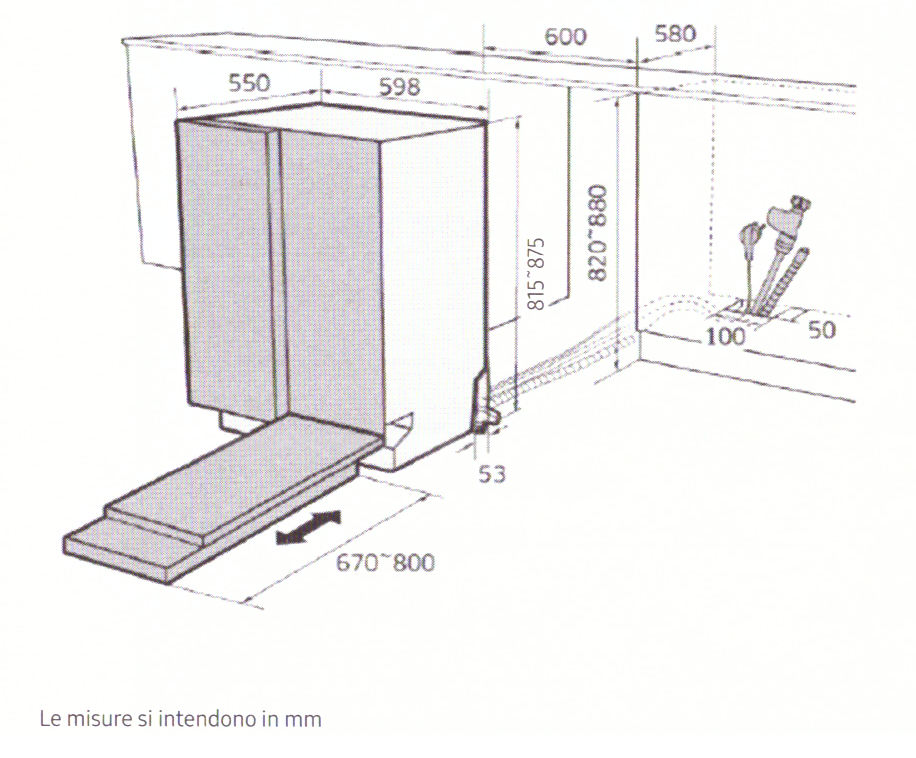 - Dimensioni in mm (LxPxA) 598 x 550 x min 815 max 875