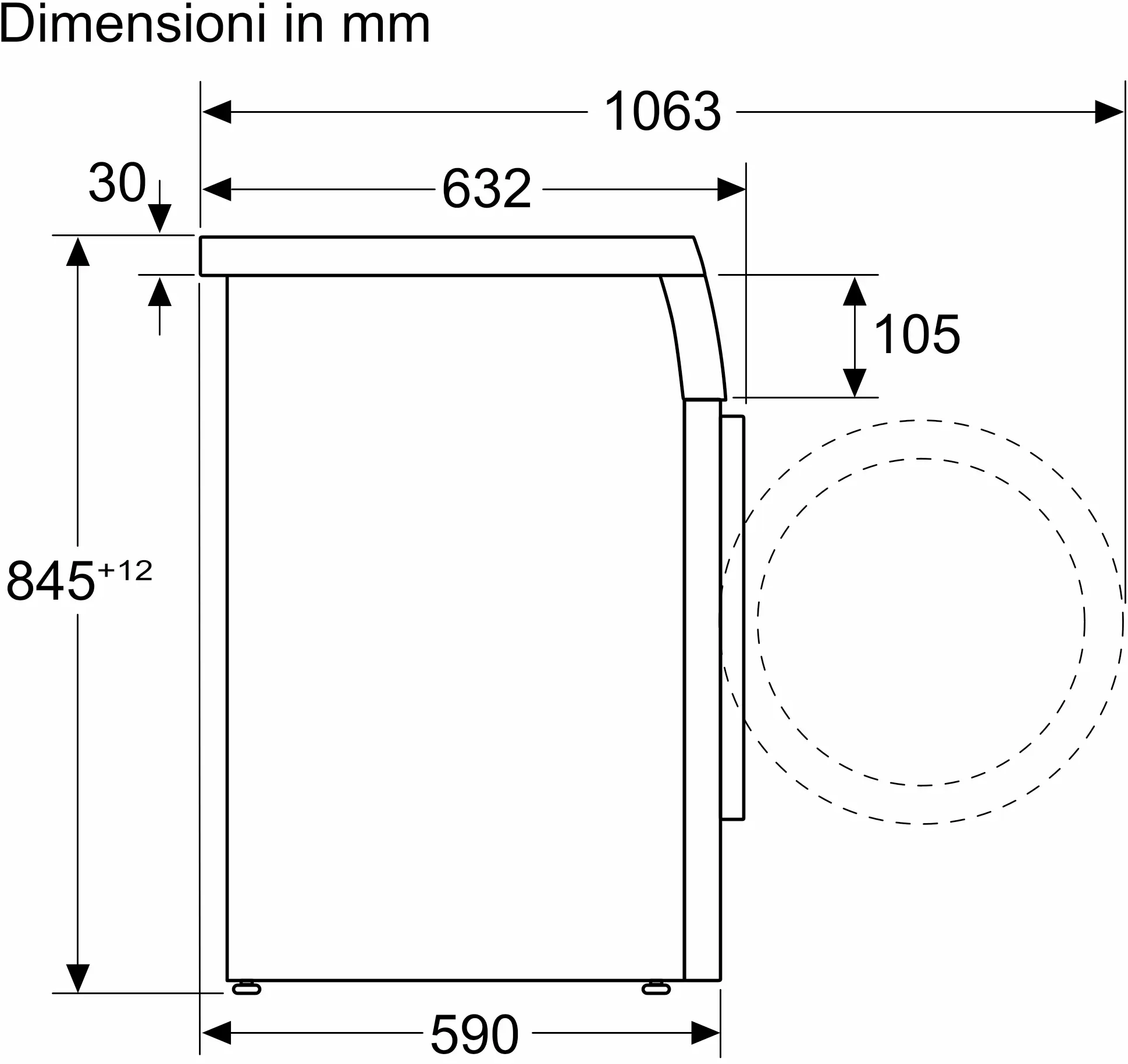 - Profondità con porta aperta a 90 gradi: 1063 mm