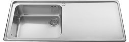 Descrizione: Lavello da incasso semifilo in acciaio inox ad una vasca ed un gocciolatoio liscio, cm 117