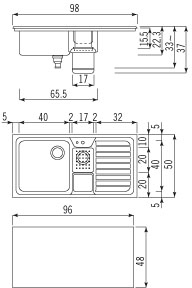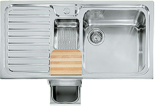 - Piano lavaggio multifunzione da incasso in acciaio inox a una vasca, una bacinella ed uno scivolo