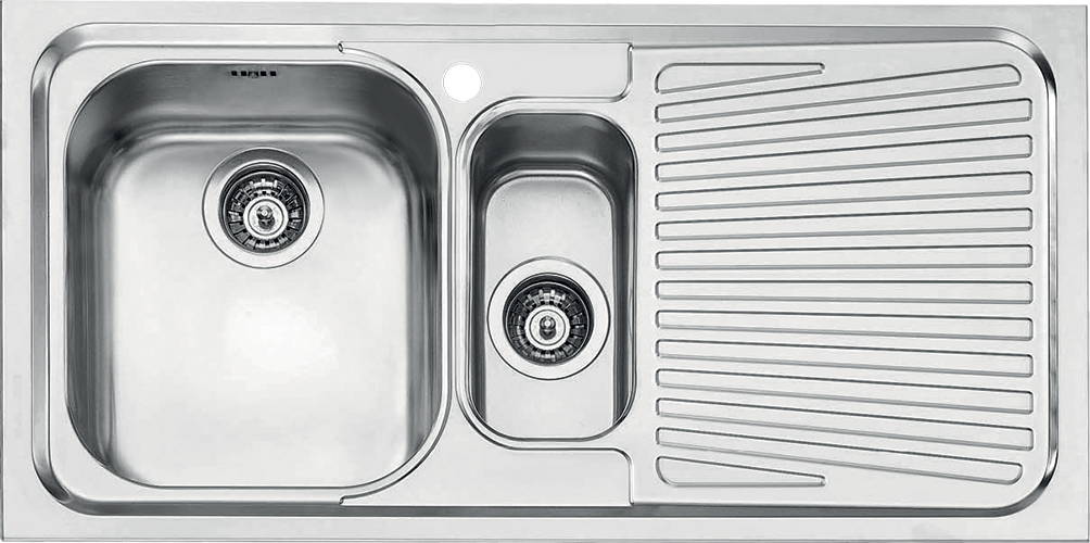 Descrizione: Lavello una vasca e mezza con gocciolatoio in acciaio inox Linea Vega, cm 100, sifone in dotazione