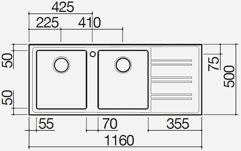 • Piano lavaggio da incasso in acciaio inox a 2 vasche ed uno sgocciolatoio