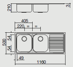 Descrizione: Lavello B_Fast incasso in acciaio inox, 2 vasche con gocciolatoio, cm 116