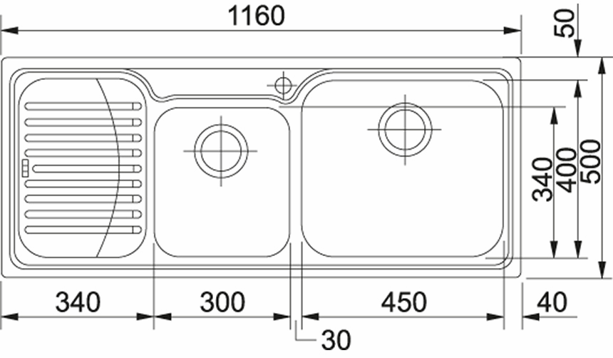 • Larghezza vasca piccola 340.00 mm