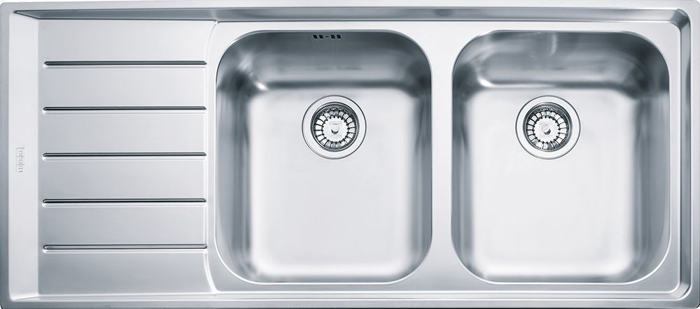 Descrizione: Lavello in acciaio inox, serie Neptune filotop, 2 vasca con gocciolatoio, base 80
