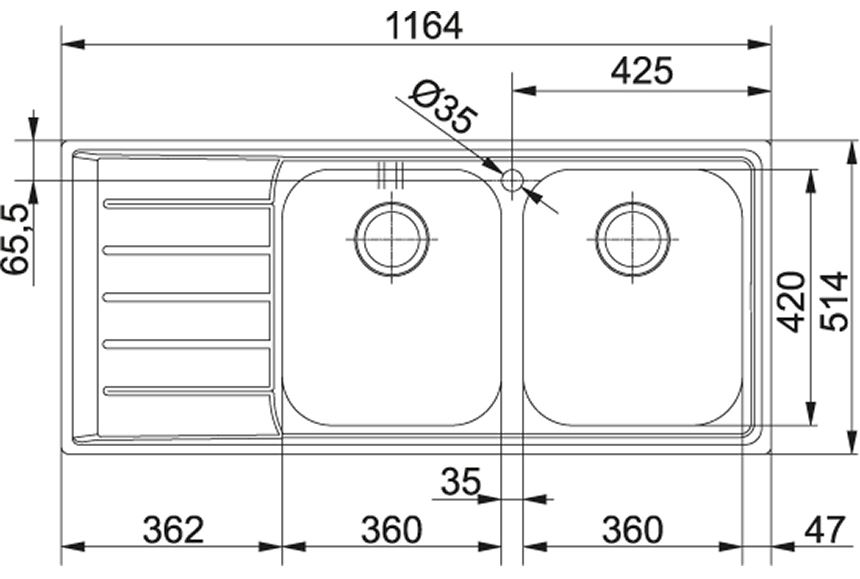 • Lunghezza vasca 360.00 mm