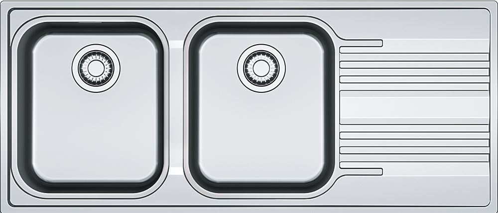 Descrizione: Lavello in acciaio inox, serie Smart, 2 vasche con gocciolatoio, base 80