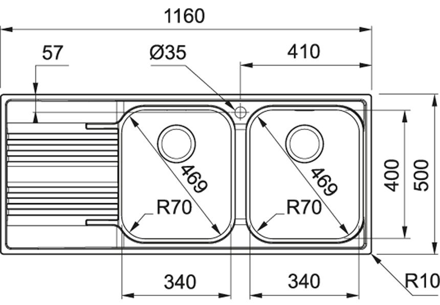 • Lunghezza vasca 340.00 mm