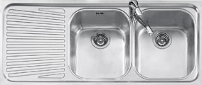 Descrizione: Lavello doppia vasca con gocciolatoio in acciaio inox Linea Vega, cm 116, sifone in dotazione