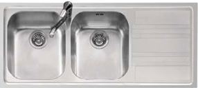 Descrizione: Lavello doppia vasca con gocciolatoio in acciaio inox linea Life, cm 116, bordo ribassato, sifone in dotazione