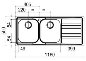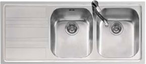 Descrizione: Lavello doppia vasca con gocciolatoio in acciaio inox linea Life, cm 116, bordo ribassato, sifone in dotazione
