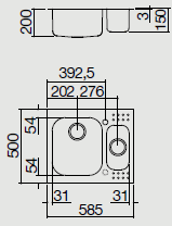 Descrizione: Lavello Select incasso in acciaio inox, 1 vasca e mezza, cm 58