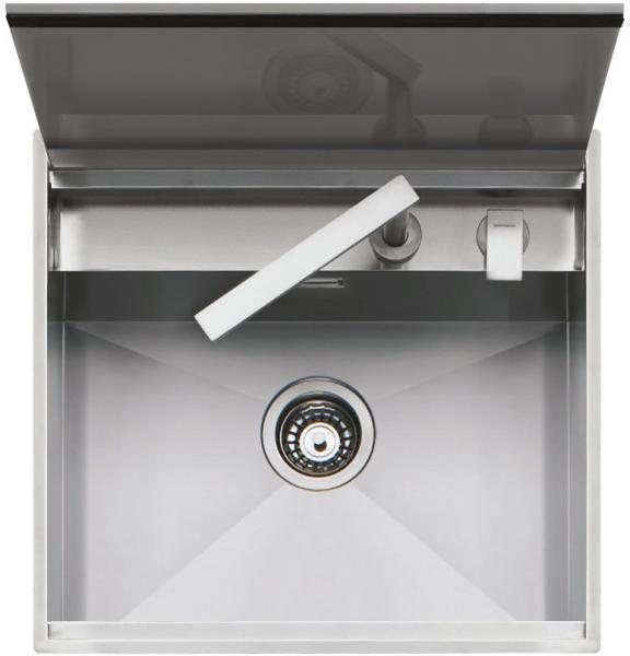 - coperchio in acciaio inox bilanciato removibile con apertura manuale
