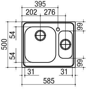 Descrizione: Lavello una vasca e mezza in acciaio inox Linea Vega, cm 58,5, sifone in dotazione