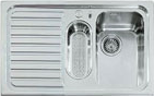 Descrizione: Lavello da incasso in acciaio inox ad una vasca, una bacinella, ed uno gocciolatoio, cm 78